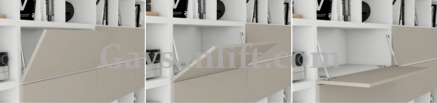 Целью установки гидравлических пружин на шкафы с дверцами, открывающимися вниз, является замедление движения двери. В отличие от газовой пружины, оказывающей толкающее действие, демпфер оказывает тормозящее действие в фазе своего растяжения, т.е. при открытии двери, и находится на свободном ходу в фазе сжатия (закрытие двери).