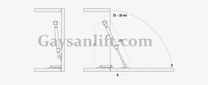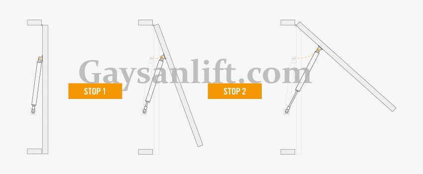 Использование газовой пружины Free Stop особенно показано для навесных шкафов, установленных высоко над полом, чтобы до дверей не было трудно добраться, когда они подняты.